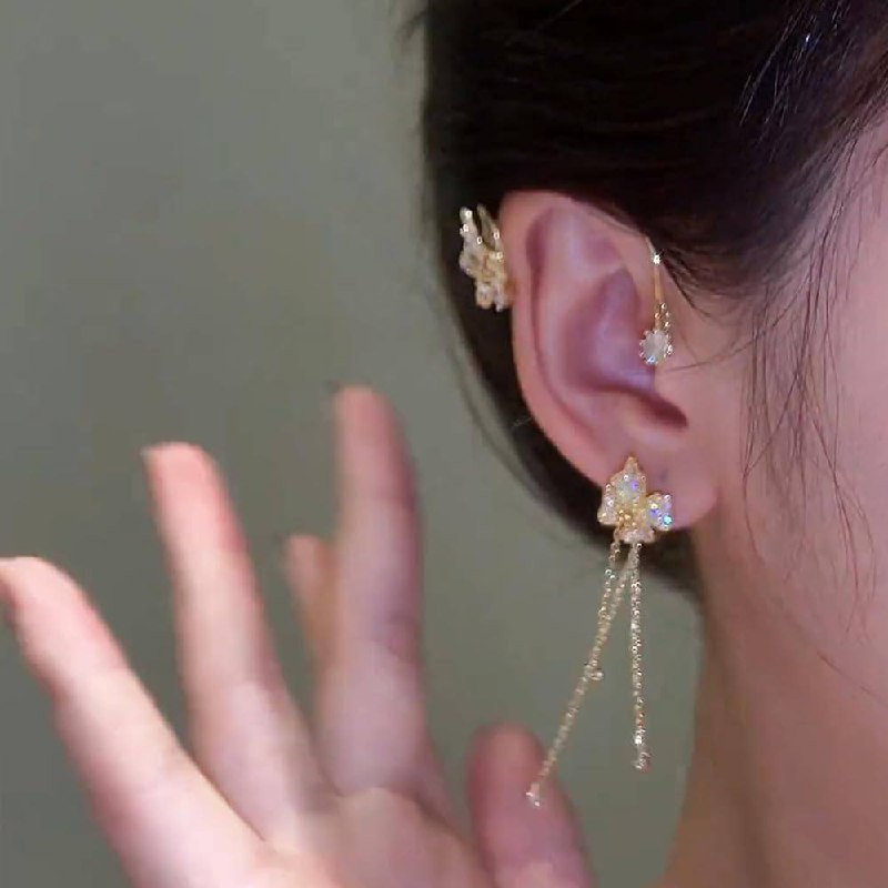 أبهري الجميع بإطلالة تخطف الأنفاس مع أقراط جناح الفراشة الفاخرة. قطعة استثنائية تلتف حول الأذن دون الحاجة لثقوب متعددة، لتمنحك مظهراً ملكياً متدرجاً بالأناقة والأنوثة.